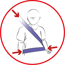 Bilbältet ska sitta nära kroppen, över bröstet och ner mot låren.