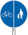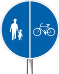 Skyltarna ovan anger på vilken sida cyklisten ska vara i förhållande till fotgängaren på en gång och cykelbana.